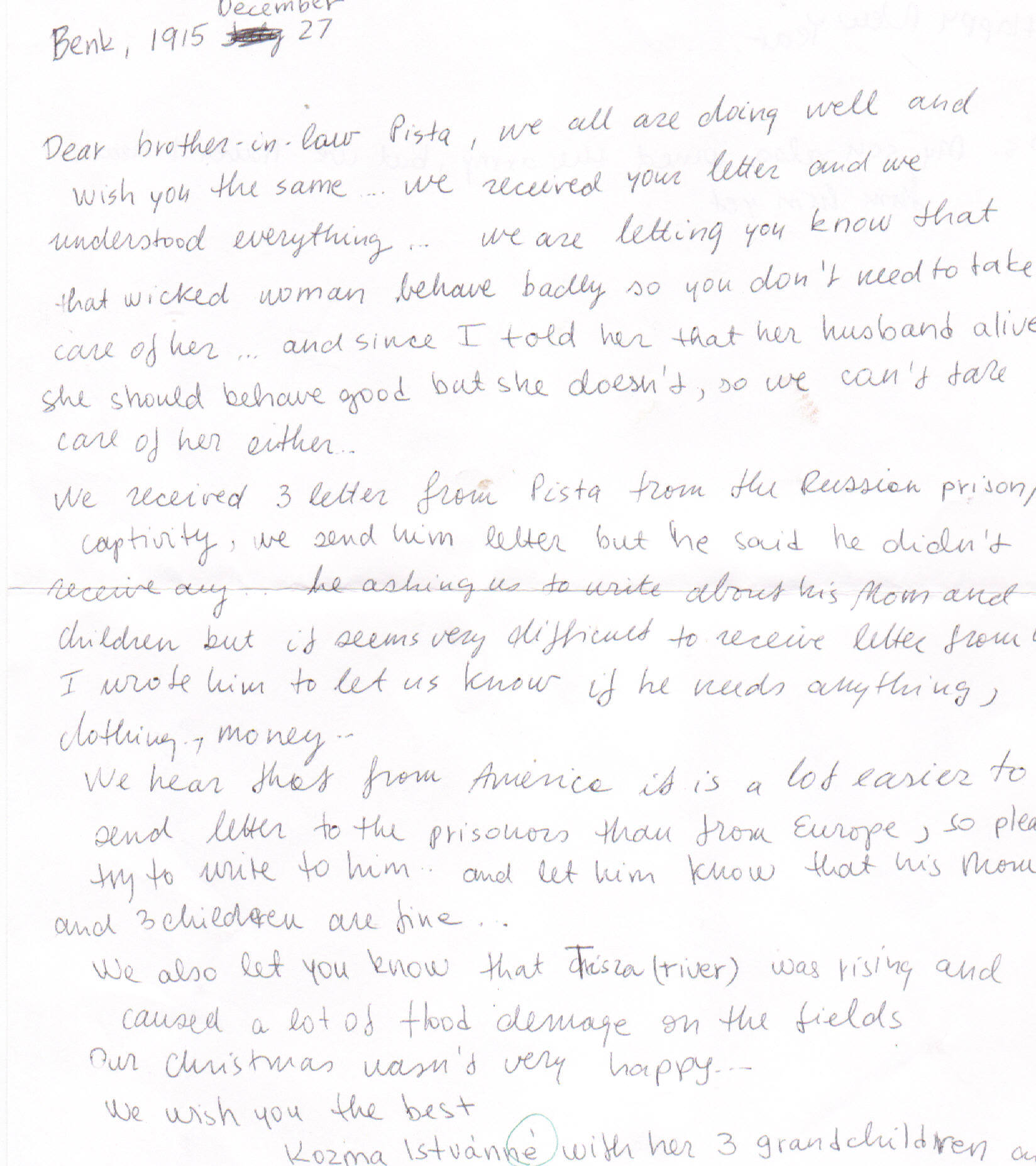 1915 Letter from Benk,