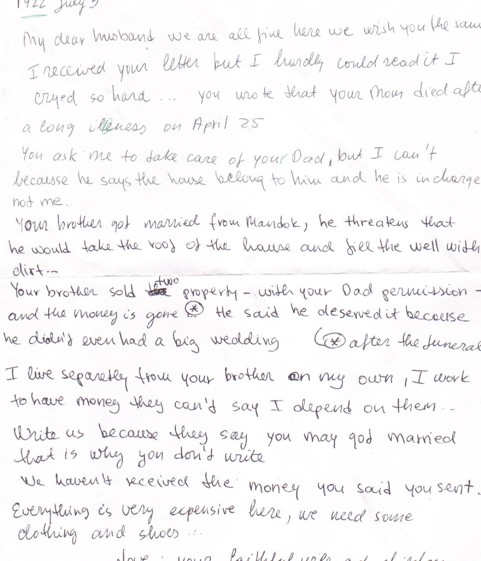 1915 Letter from Benk,
