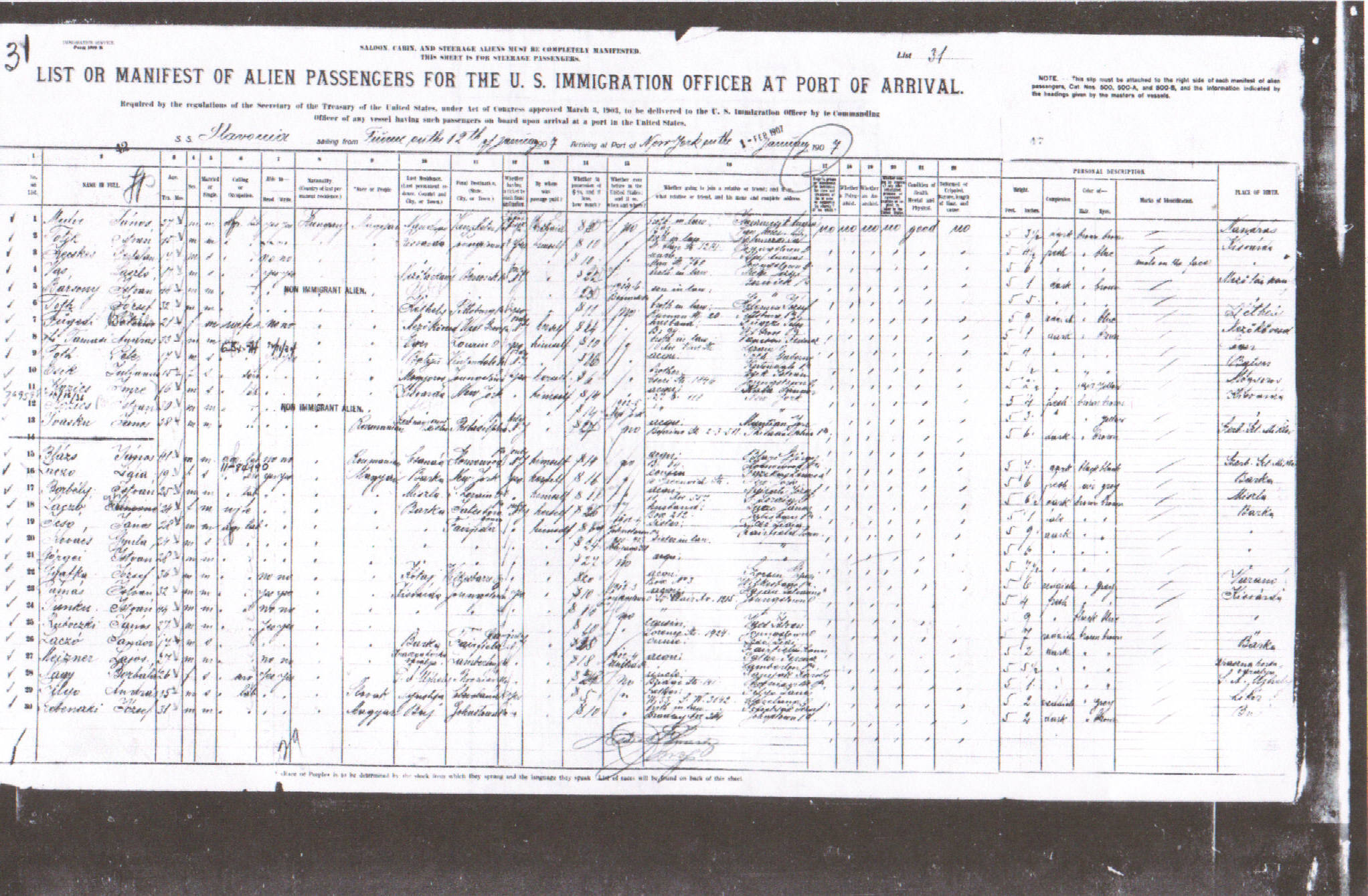 Actual Ship Manifest